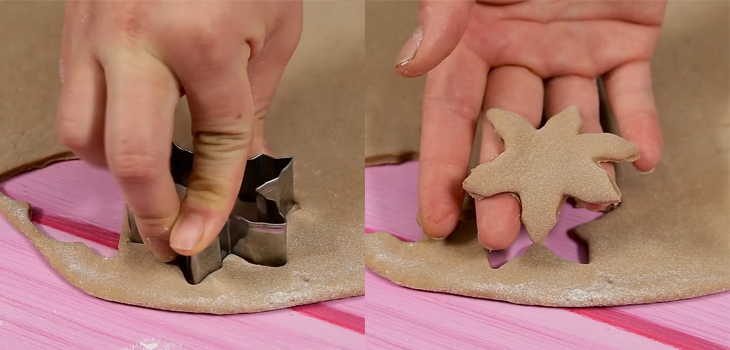 Dùng khuôn ấn lên bề mặt bột để tạo hình bánh.