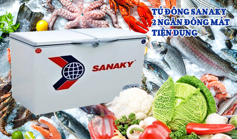 – Tủ đông Sanaky thiết kế 1 ngăn đông, một ngăn mát, 2 cánh mở vali, dễ sử dụng, hạn chế thoát nhiệt, tiết kiệm điện năng. Thuận lợi trữ các loại thực phẩm đông lạnh và rau củ quả tiết kiệm được thời gian..